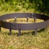A ring is made up of either two or three pre-rolled 1 metre x 1.6mm pieces, creating either a 600, 900, 1,200 or 1,500mm diameter ring with a depth of 75mm. Installation is quick and simple. With concave teeth, and by being bolted together, the rings are held securely in the ground. The rings can easily take the weight of a ride-on tractor lawn mower.
